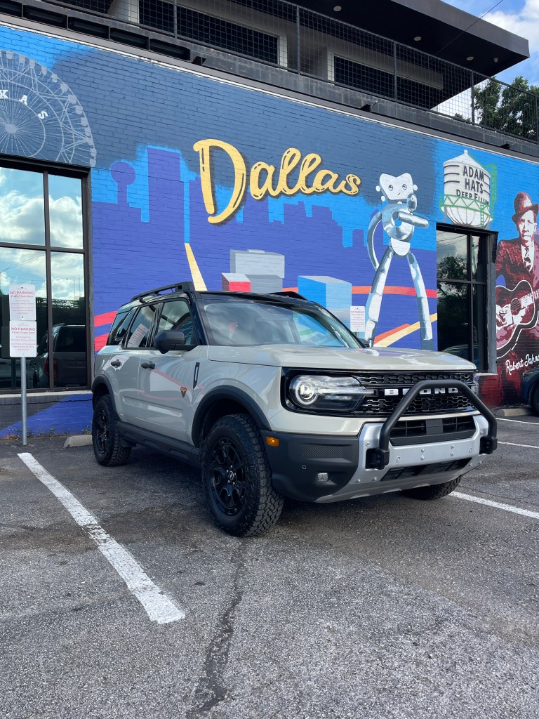 Picking up the Bronco Sport at Ford headquarters on Cowboy Way felt like the right start to the story. The Cowboys’ state-of-the-art training facility sits right there, and everything about the area feels polished and big-league. While we were getting situated, we spotted the other half of our plan getting dropped off nearby — the two-door Bronco Stroppe — and even sitting still, it had that “you’re going to remember me” energy. We didn’t get to take it yet, but seeing it there made the Bronco Sport week feel like the appetizer before a main course we already knew would be wild.